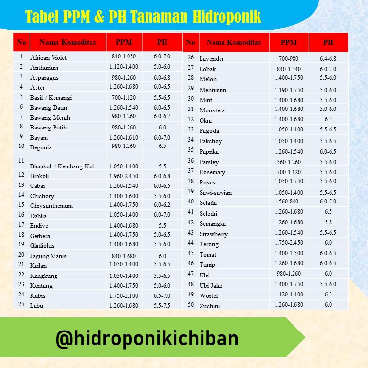 Budidaya hidroponik memfokuskan kebutuhan tanaman pada nutrisi yang terukur melalui nilai EC Electrical Conductivity. Konversi faktornya ini yang sedikit membedakan hasil nilai ppmnya. Lt pembagi perliter.